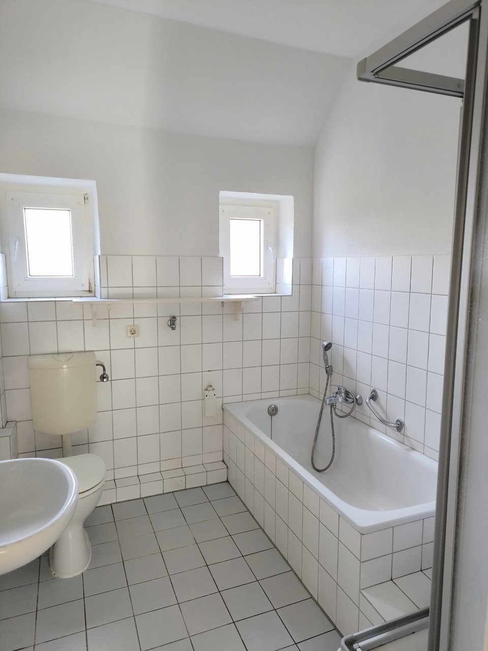 - Etagenheizung, Bad mit Dusche und Wanne, Außenrollläden, frisch gestrichen, Keller, WM-Anschluss im Keller