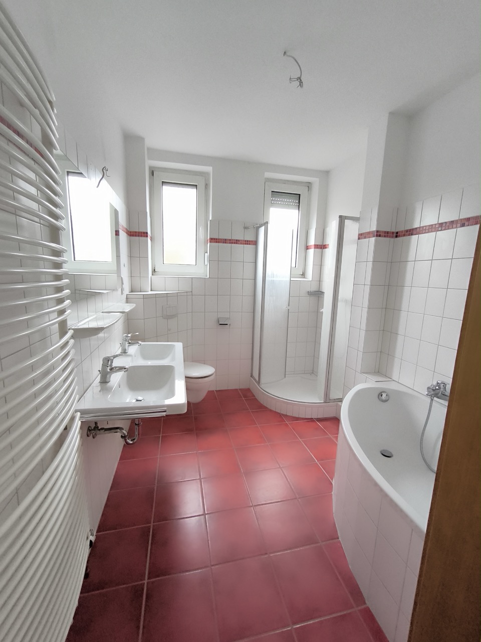- Zentralheizung, Bad mit Wanne, Dusche und Doppelwaschbecken, Außenrollläden, Kellerraum