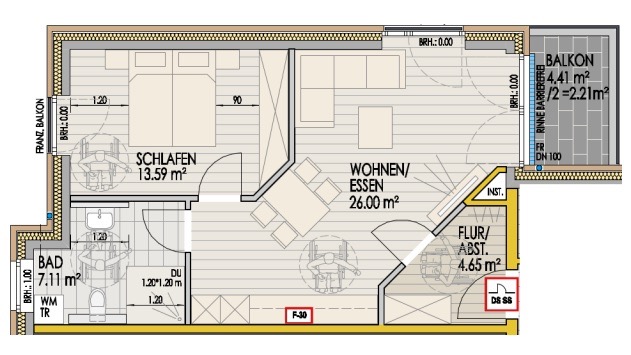 - Wärmepumpe, Neubau, barrierefreies Wohnen, Terrasse, Bad mit Dusche, elektrische Außenrollläden, Fahrstuhl, WM-Anschluss im Bad